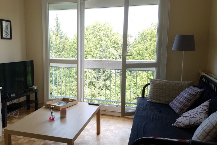 Appartement T2 situé proche de la faculté de Beaulieu, comprenant: Entrée, pièce principale, cuisine aménagée (meubles, plaques vitro), une chambre, salle de bains, WC séparés. Une cave. Une place de parking aérien Disponible le 13/11/2025