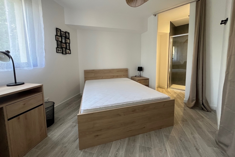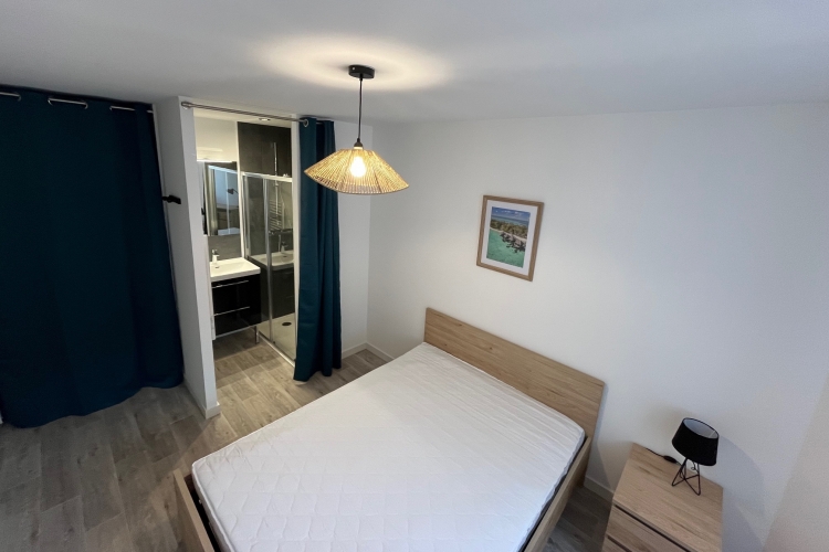 COLOCATION - IMMEUBLE NEUF - A louer au pied de la faculté de Beaulieu, chambre meublée dans appartement neuf, de standing, de 90m² (1 chambre disponible). Chaque chambre est fibrée, dispose d'un lit, bureau, dressing et salle d'eau indépendante. L'appartement comprend cuisine aménagée et équipée, séjour avec terrasse, buanderie avec machine à laver et WC, accessibles pour tous les colocataires. La résidence est sécurisée par caméra. Local vélo et jardin. Charges 90€ comprenant : Ménage des pièces communes 1x par semaine, l’eau froide et chaude - l’électricité- le chauffage - l’entretien des extérieurs - abonnement internet