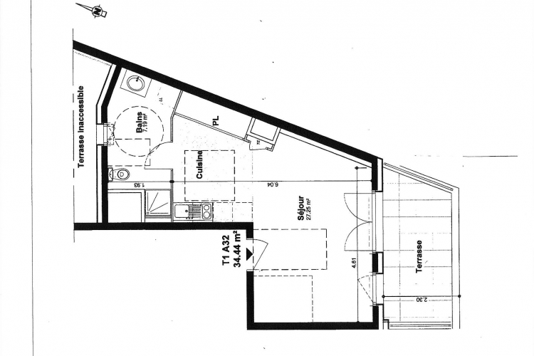 A louer CESSON HUBLAIS, proche centre studio de 34m² exposé SUD avec terrasse de 8m², placard, une pièce principale avec kitchenette (plaques + frigo), salle d'eau avec wc. Disponibilité 14/11/2025
